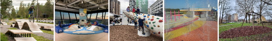 Inrichting van speelplaatsen en openbare ruimte. PopUp speelplekken van Rodeco, Velopark fiets elementen voor pumptrack en beweegparcours, bijzondere en inspirerende plekken van Monstrum.