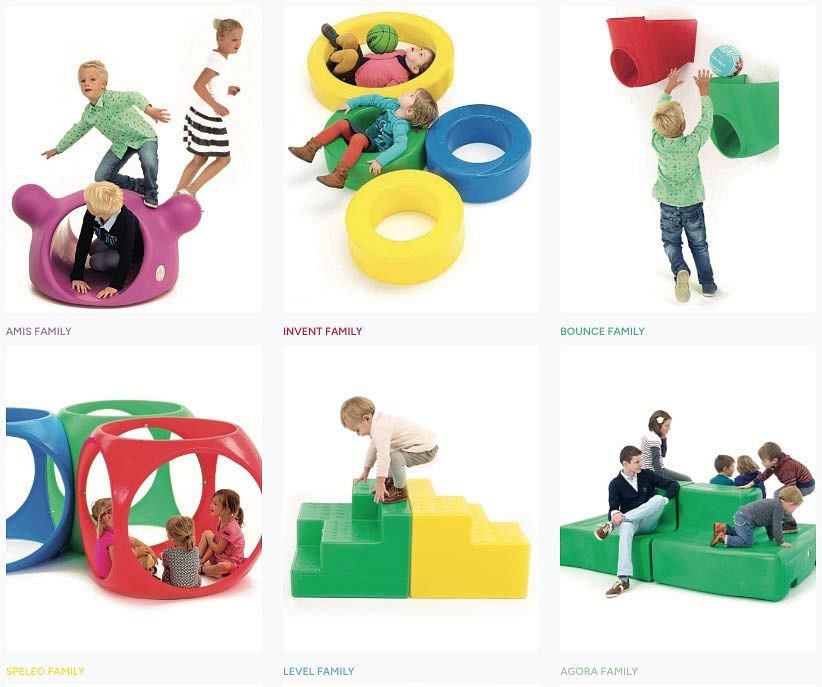 Voor kinderen: Rollen, kruipen, springen, klimmen. Zitten, bouwen, verstoppen. De abstracte vormen stimuleren de fantasie, zodat ieder kind, van peuter tot prille tiener, er zijn eigen spel in vindt.