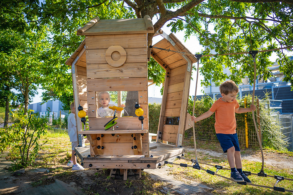 Arborea Play® is bovendien ideaal voor een schoolplein. Met deze speelstructuren maak je van een schoolplein een groenblauwe omgeving die niet alleen uitnodigt tot spelen, maar ook bijdraagt aan natuuronderwijs en biodiversiteit. Kinderen voelen zich in de bomen ware avonturiers en ontdekkingsreizigers. Hun waarnemingsvermogen en verbeelding worden steeds gestimuleerd.
