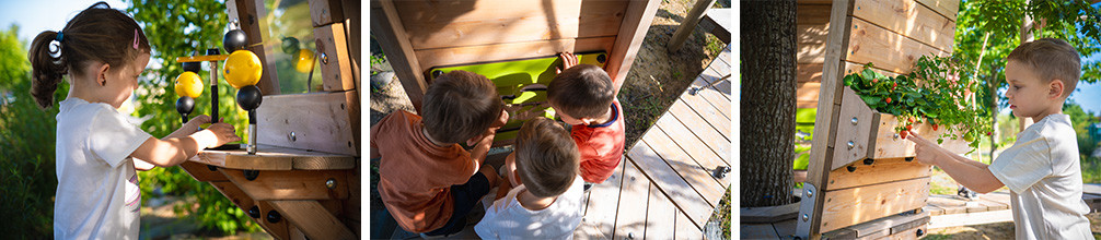 Er zijn ook verschillende educatieve panelen waaruit gekozen kan worden. Denk aan een plantenbak waarin kinderen kunnen zien hoe planten groeien of een mierenboerderij die inzicht geeft in het leven onder de grond. Zo komt spel en educatie op een natuurlijke manier samen.