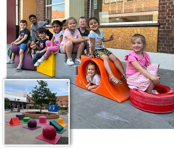 Veel architecten grijpen nog naar beton of hout, maar kunststof biedt verrassende mogelijkheden. Het is duurzaam, volledig recycleerbaar en laat creatieve, onverwachte vormen toe. Kleur maakt mensen blij, kunststof voelt warm aan, is gemakkelijk schoon te maken, en je hoeft geen bomen te kappen om nieuwe speeltoestellen te maken.