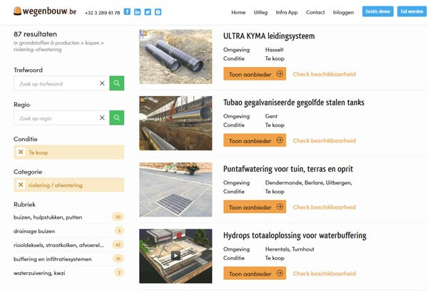 Wist je dat de website wegenbouw.be ook fungeert als een marktplaats en catalogus voor professionals in wegenbouw en openbare ruimte die op zoek zijn naar specifieke materialen voor rioleringsprojecten en waterbeheer. Een voorbeeld >
